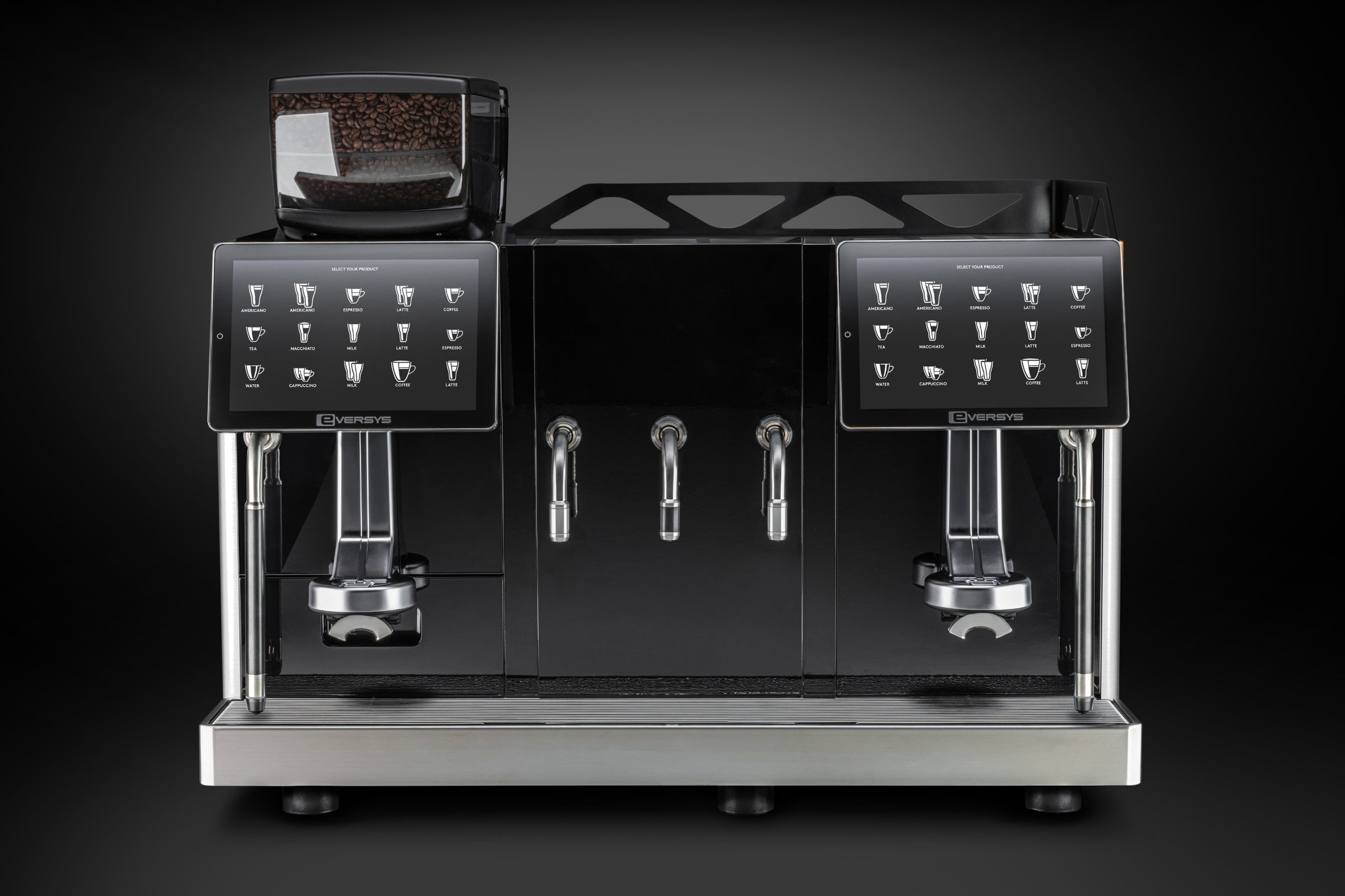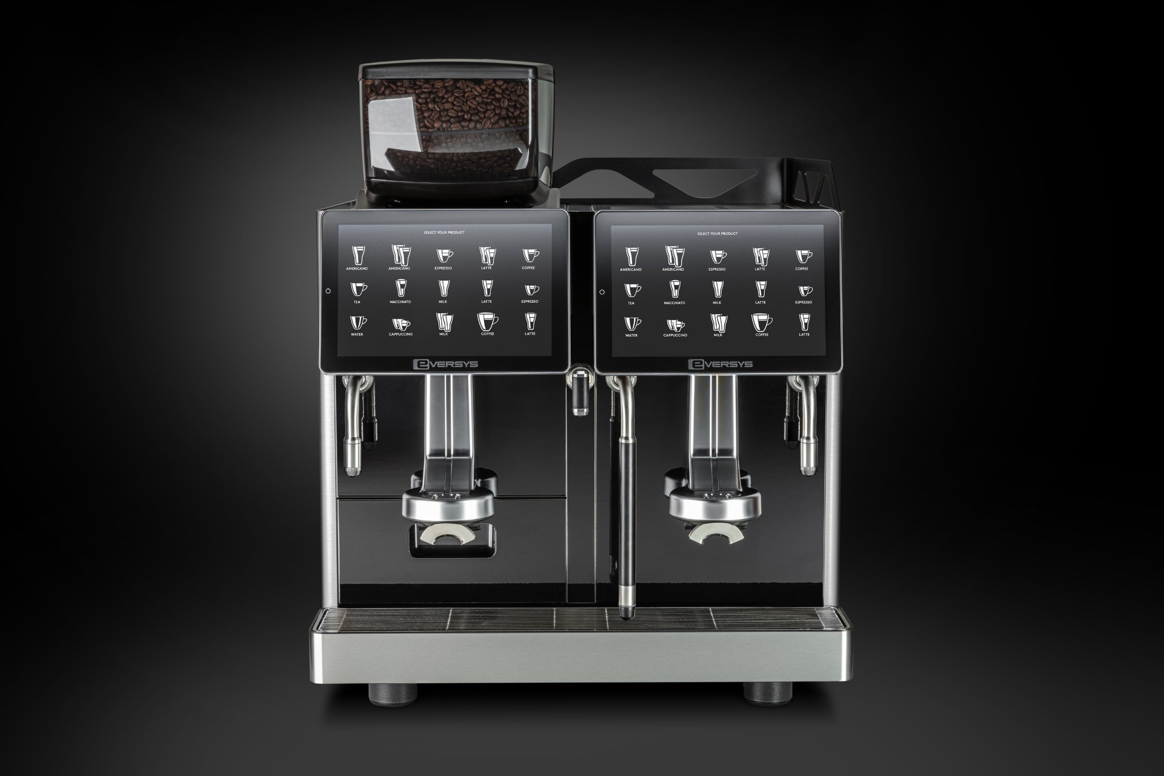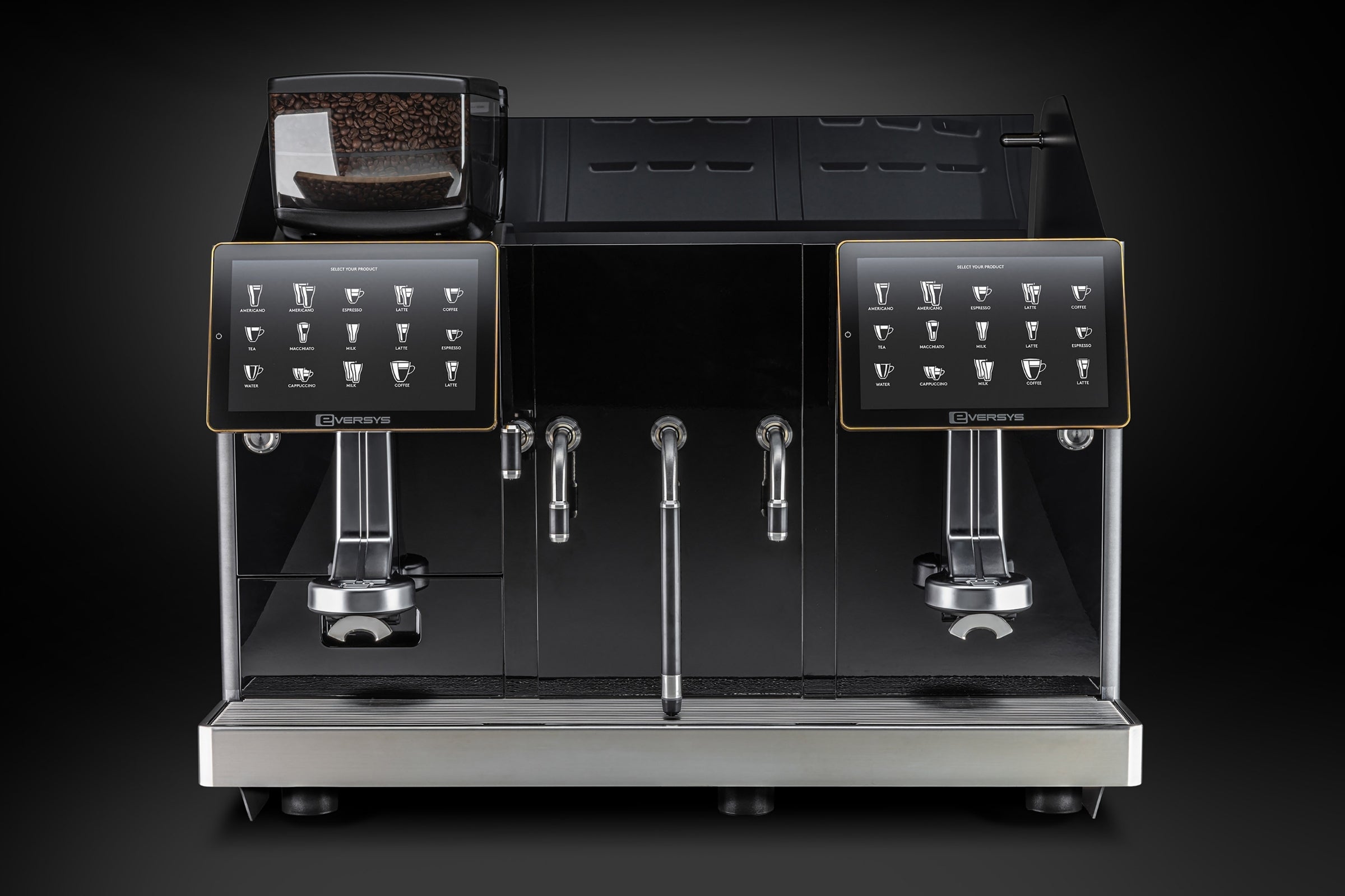 2 TOUCH SCREENS, EACH WITH 1 COFFEE OUTLET AND WAND